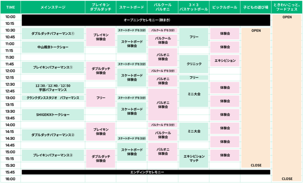 UBE URBAN SPORTS FES 2024のタイムテーブルを公開しました。各競技のスケジュールを確認し、当日は存分に楽しみましょう!