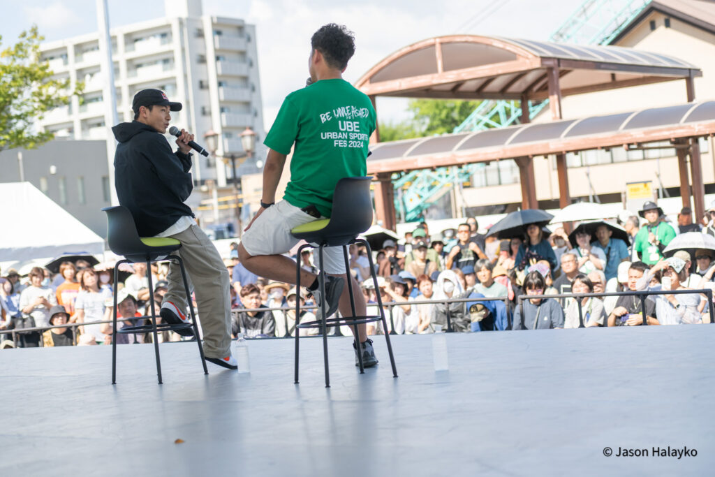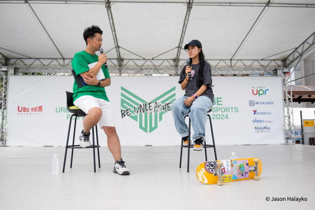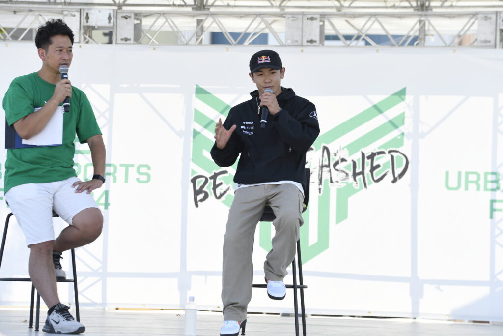スケートボードを始めたきっかけや、オリンピック出場に至るまでのエピソード、大学生としての学業両立についてなど、来場者からの質問を交えながらのトークセッション。