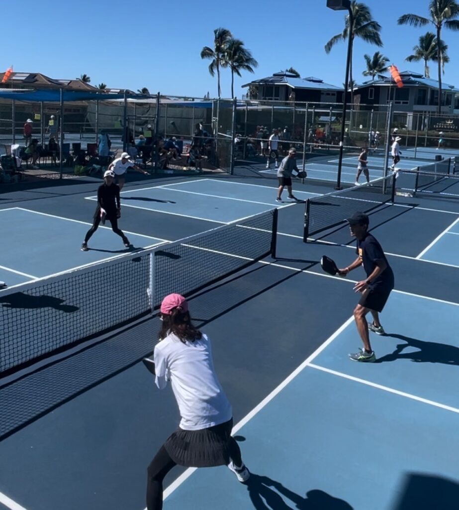 ピックルボールは1965年アメリカで家族が楽しめるゲームとして考案された、バドミントンコートと同じ広さのコートで板状のパドルを使い、穴あきのボールを打ち合うスポーツです。レクチャーを受けると短時間でラリーができ、穴あきボールが風の抵抗を受け、強く打ってもボールの速度が弱まる為、シニアや大人から子供までミックスで楽しめる簡単なスポーツです。新感覚のスポーツを体験ください